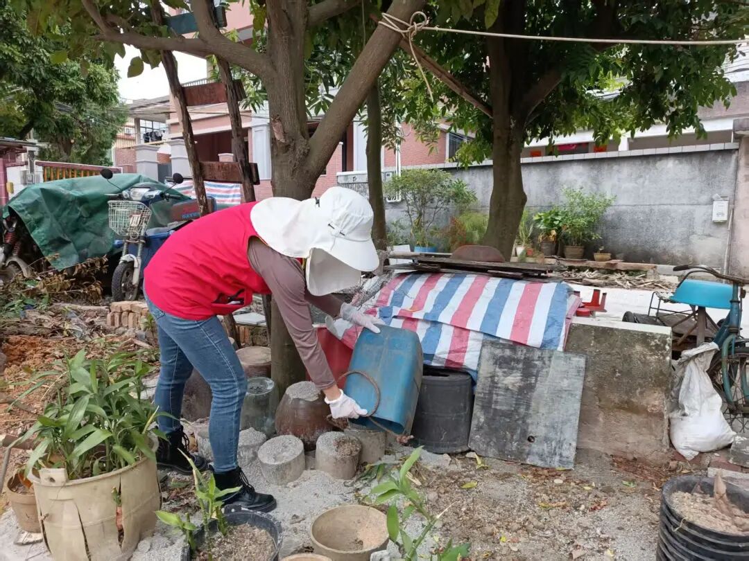 愛國(guó)衛(wèi)生運(yùn)動(dòng)同步推進(jìn),為“兩熱”防控打下堅(jiān)實(shí)基礎(chǔ)。結(jié)合“百千萬工程”人居環(huán)境整治要求,翠亨新區(qū)(南朗街道)掀起全員參與的環(huán)境整治熱潮:黨員干部率先帶頭沖鋒,志愿者與村(居)民積極響應(yīng)跟上,大家齊心協(xié)力清理衛(wèi)生黑點(diǎn)、清運(yùn)各類垃圾、清拆亂搭亂建,還對(duì)公共區(qū)域的積水進(jìn)行“拉網(wǎng)式”排查清理。通過清理雜亂的角落和積水的盆栽,轄區(qū)巷道變得整潔、院落變得清爽,環(huán)境面貌大為改觀,從源頭徹底鏟除了蚊蟲孳生的“溫床”。