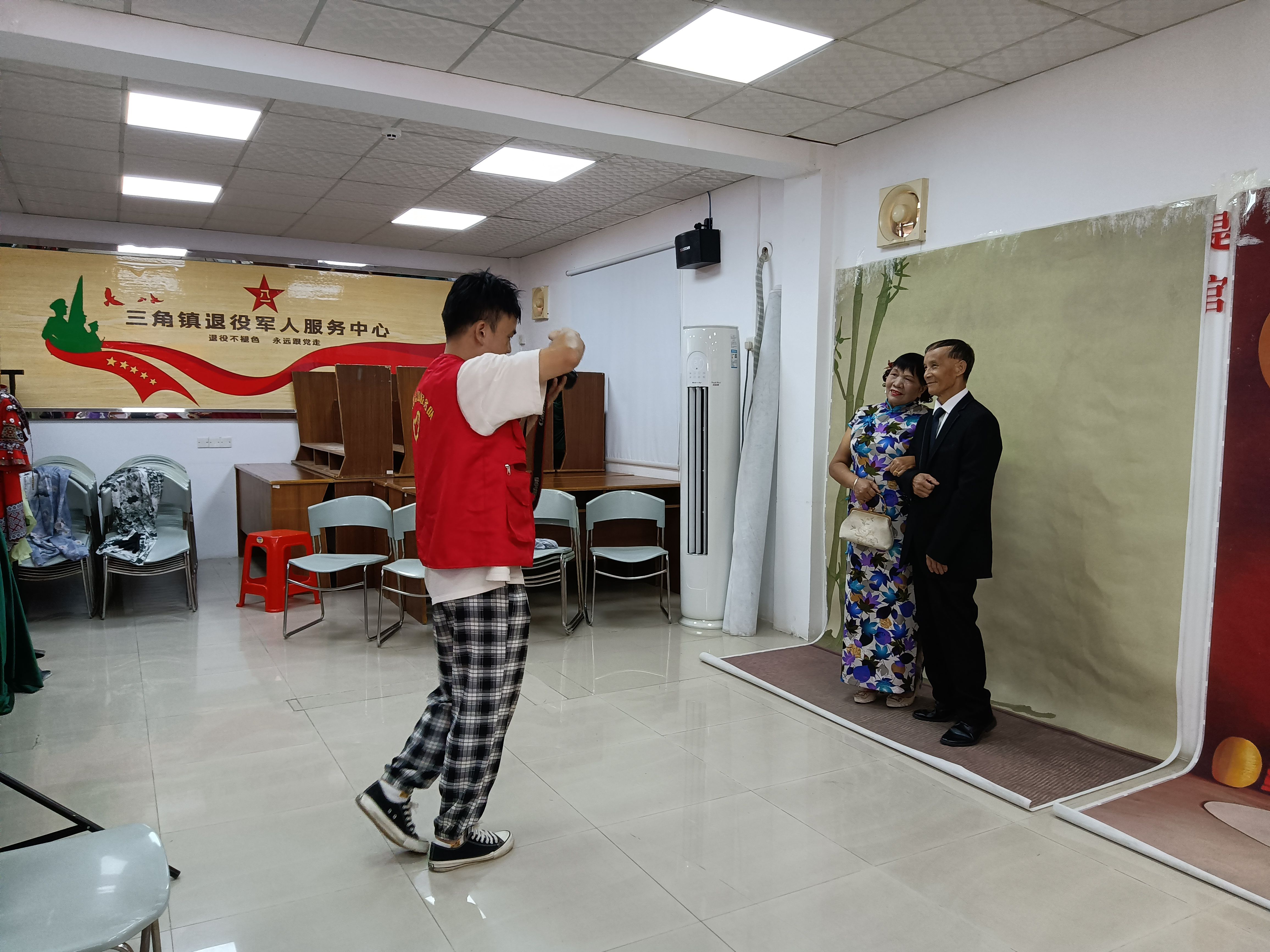 活動現(xiàn)場,三角鎮(zhèn)退役軍人服務(wù)中心的會議室被精心布置成臨時攝影棚,分為攝影區(qū)、化妝區(qū)、服裝區(qū)、選片區(qū)和等候區(qū)等多個功能區(qū)域,流程清晰、服務(wù)周到。工作人員耐心為退役軍人及家屬化妝、整理服裝、調(diào)整發(fā)型,細(xì)致指導(dǎo)拍攝姿勢與表情。攝影師一邊捕捉動人畫面,一邊認(rèn)真傾聽老兵們講述崢嶸歲月。在輕松愉快的氛圍中,一個個拍攝任務(wù)順利完成,活動現(xiàn)場歡聲不斷、暖意融融。